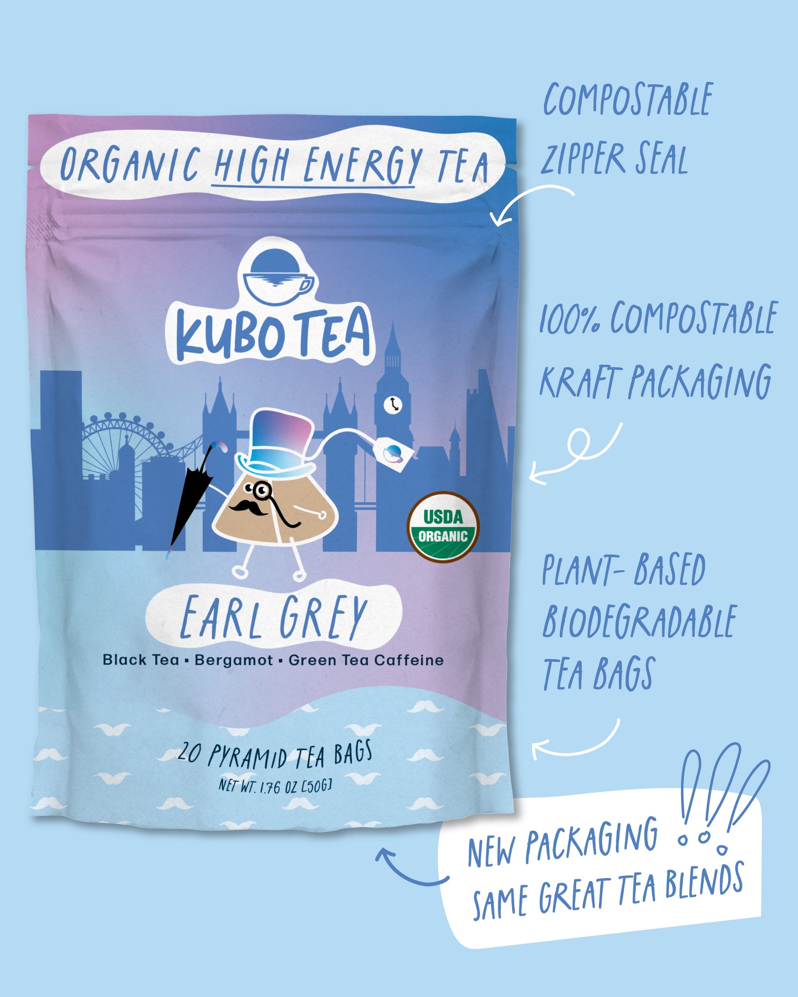 Ingredients- Organic Black Tea, Organic Caffeine from Green Tea, Natural Oil of Bergamot